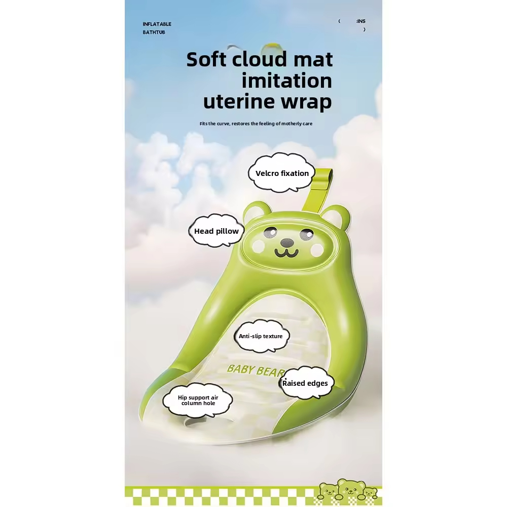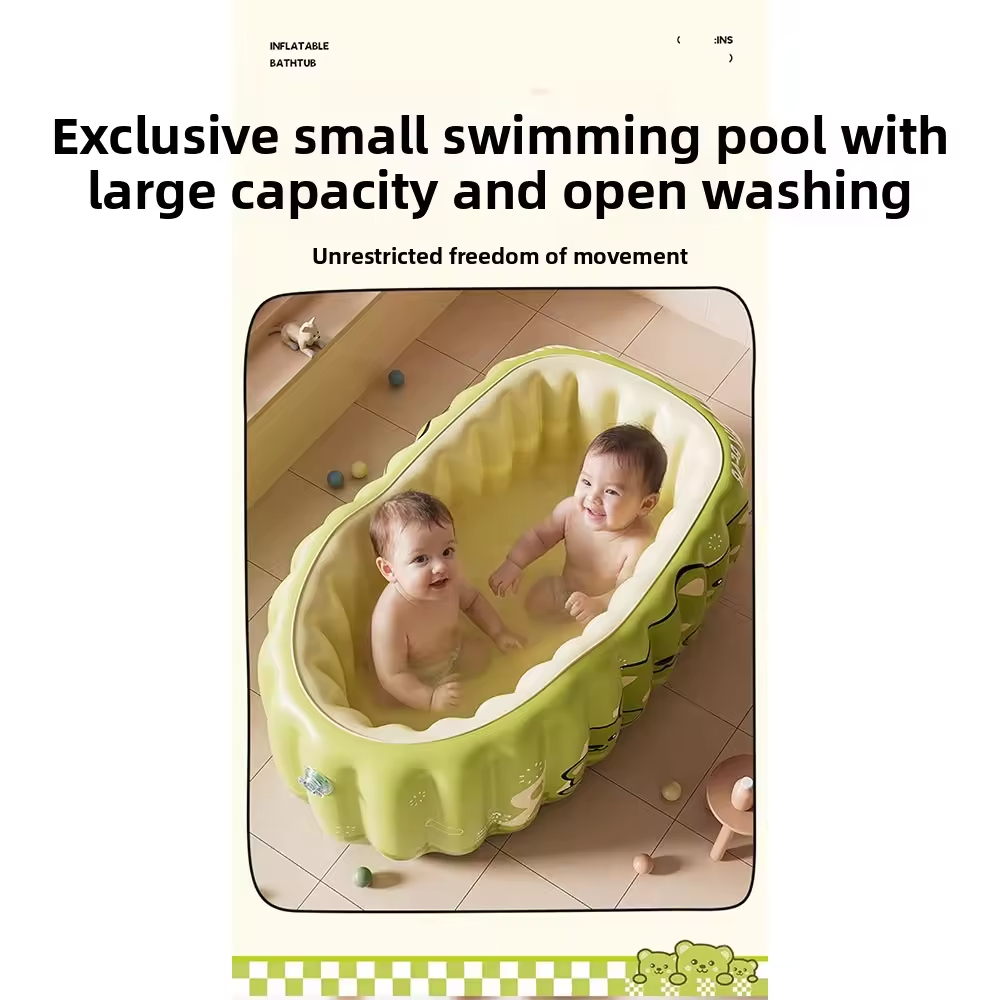 Portable bathtub for baby, Inflatable folds flat for storage. Safe, portable, and perfect for infants, toddlers, and young children. Custom colors available for baby brands and retailers. CE certified, BPA-free.