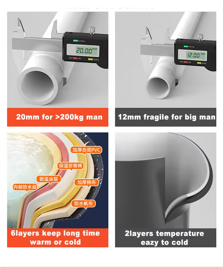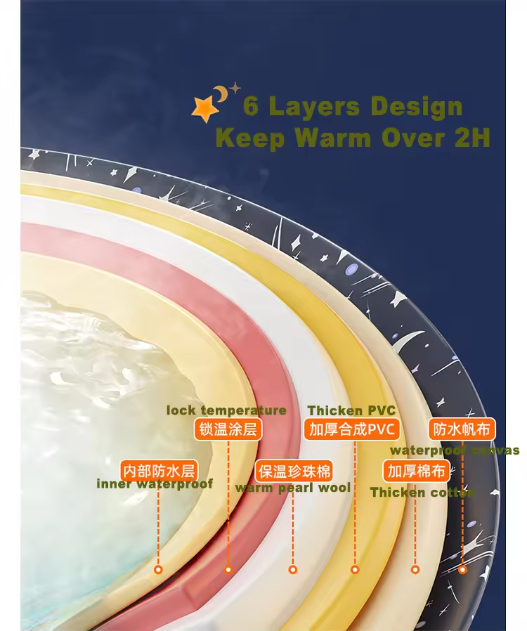 5-layer composite PVC with a soft cotton for superior heat retention and structural support.
